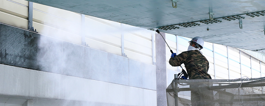 水に圧力をかけて約140℃の亜臨界状態にし、局所的・瞬間的に噴射することで汚れを落とす熱水洗浄工法です。亜臨界状態の水の性質を活用することにより、化学洗浄剤を使うことなく洗浄することができ、インフラ構造物等の維持管理に貢献します。